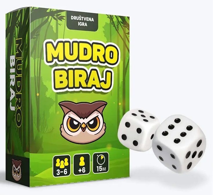 "Mudro biraj" je zabavna strateška društvena igra u kojoj bacanjem kockica (6 kockica) osvajate protivnikove karte. Karte osvajate ili ispunjenjem uslova tj. kombinacijom kockica ili uz pomoć specijalnih karata. Svaka karta nosi određen broj poena u zavisnosti od težine kombinacije koja se na njoj nalazi. Postoje dva načina kako se igra završava.